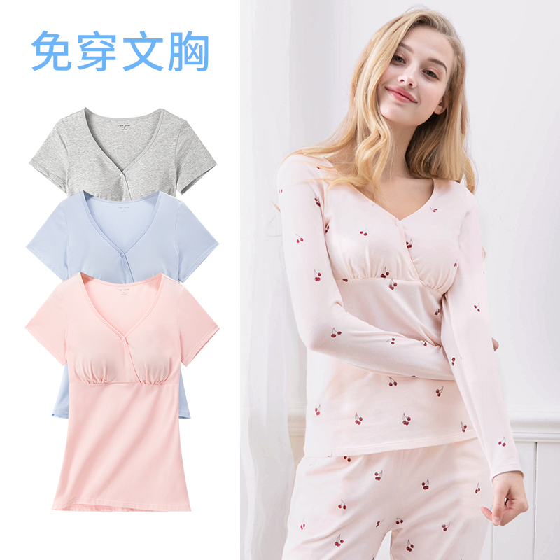 Nursing clothes Pure cotton short-sleeved top Wear-free bra Pregnant women summer nursing clothes Summer maternity clothes Home pajamas