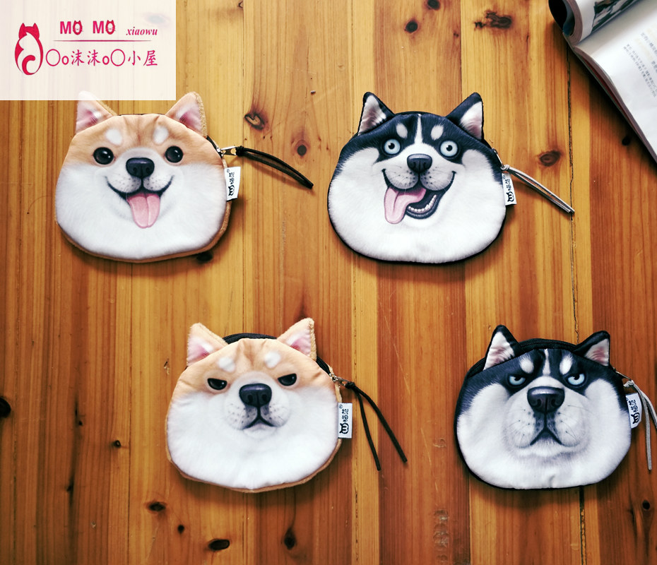 Creative God-funk two husky dog head printed coin wallet Japanese and Korean soft girl zipper fabric small bag coin bag card bag