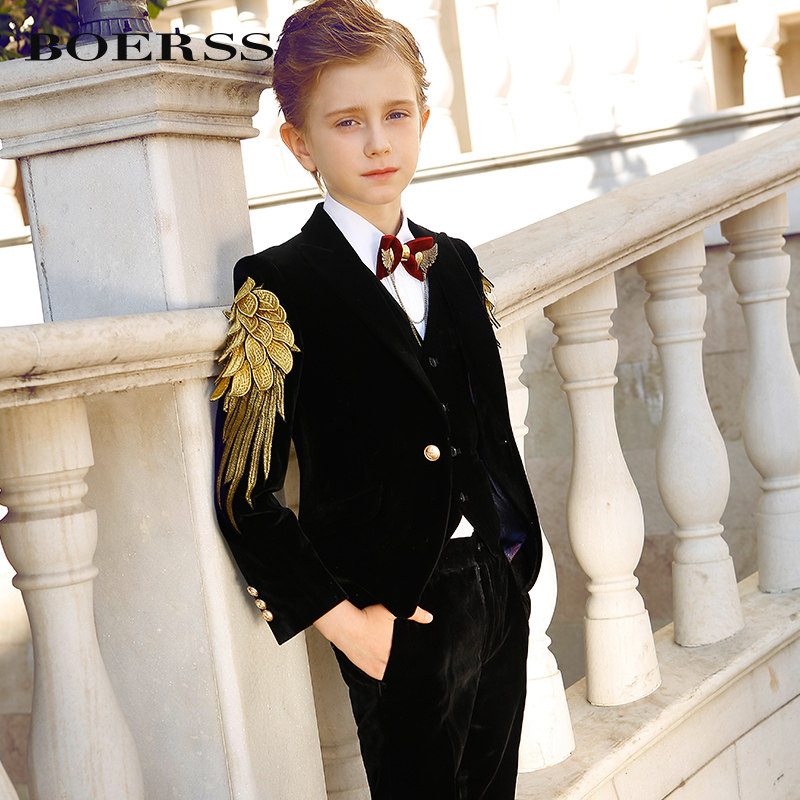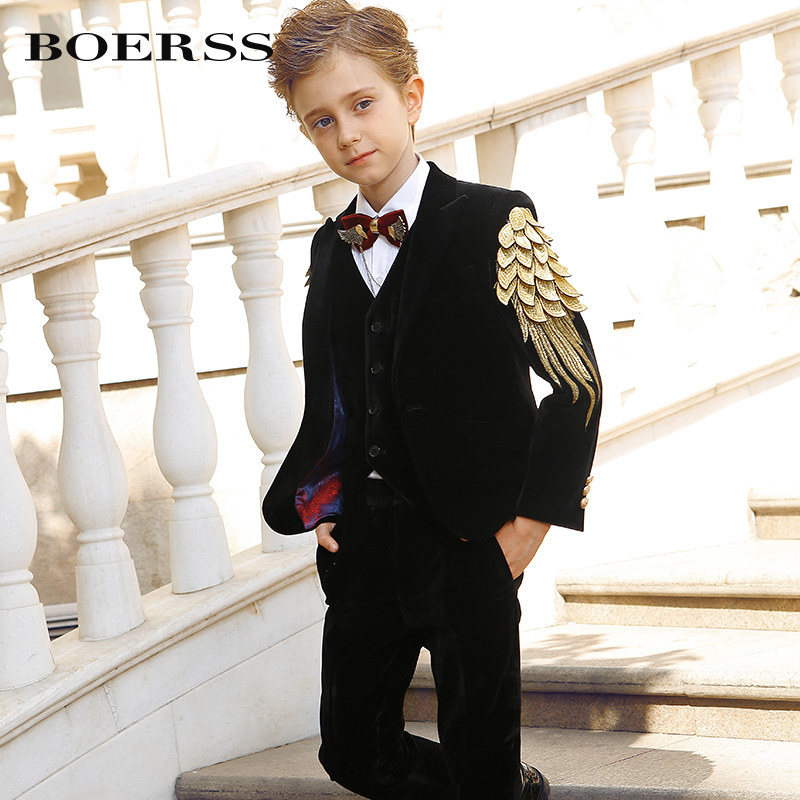 BOERSS Children's small suit suit Boy catwalk dress Velvet embroidery thickened light luxury photo studio Photo show
