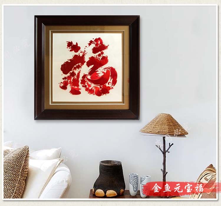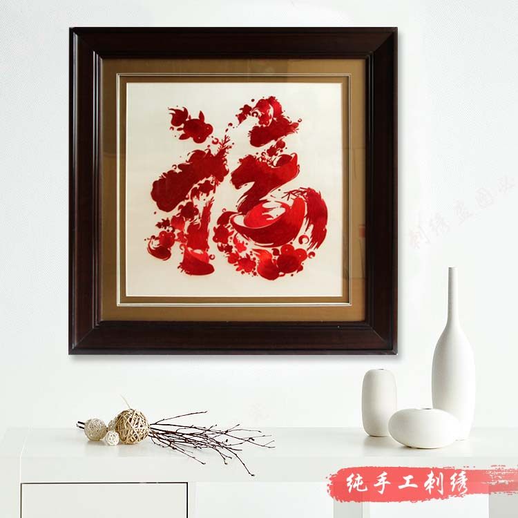 Ou embroidery boutique ingot lucky goldfish to send elders and elderly interior decoration painting pure hand-embroidered finished mural gift