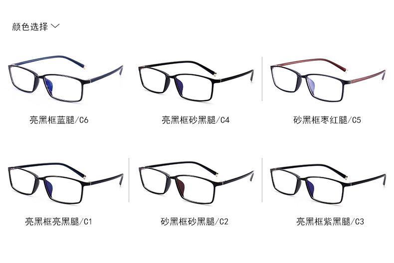 Fashion minimalist spectacle frame full frame male and female TR90 ultra light coffee blue grey mirror leg with myopia old flower glasses