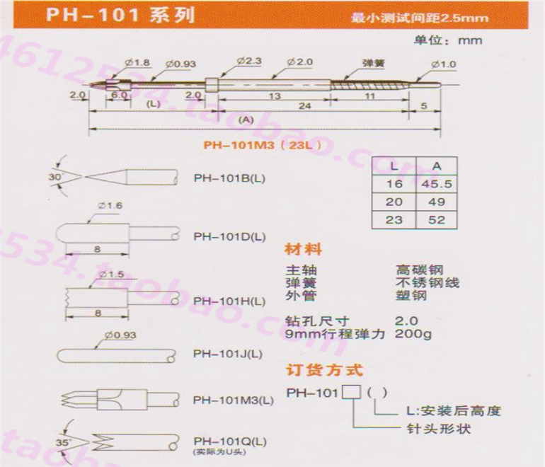PH-101M3 23L Integrated ICT Test Pin Huarong Probe PCB Pogo Pin Fixture Thimble