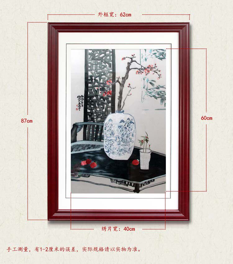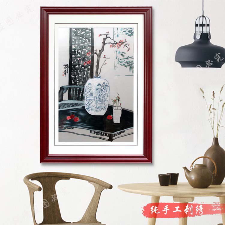 Quiet room red plum embroidery Wenzhou classical style bedroom study living room decorative painting pure handmade embroidery pendant