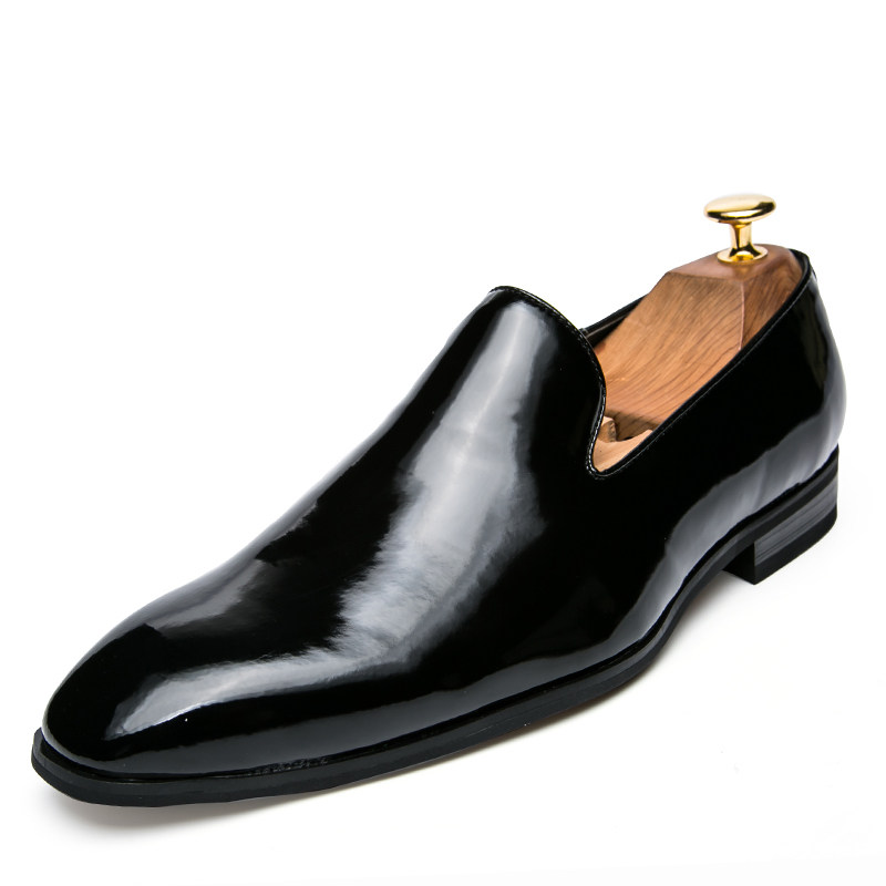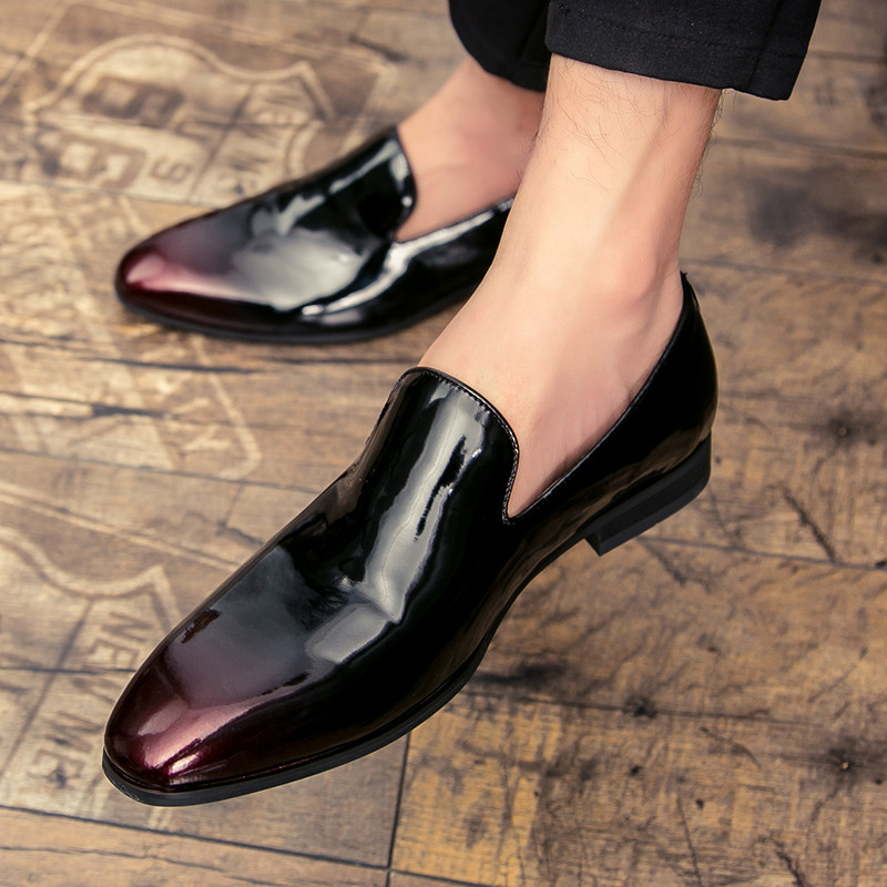 Bright leather shoes men's Korean version pointed hair stylist leather shoes loafers trend all-match British patent leather casual men's shoes