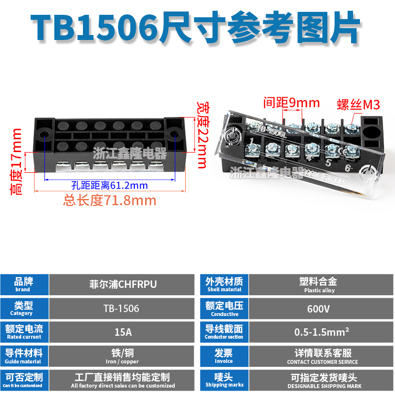 Manufacturer Direct sales wiring terminals TB1506 15A stationary terminals row 6 position posts 100 only