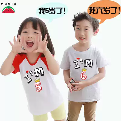 Iam 3 red and white short TIam 4 black and white short TIam 5 white short TIam 6 pink short TIam 7 yellow short T color bar 5 years old red and white short T dotted line 4 years old white short