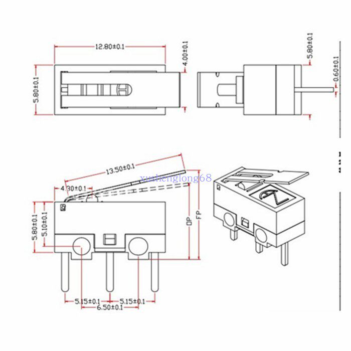 Microswitch TIAIHUA slide mouse switch computer light switch 1A 125V three-foot handle length 13 5mm