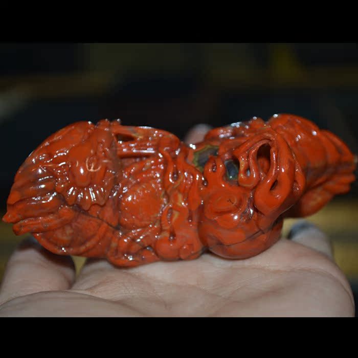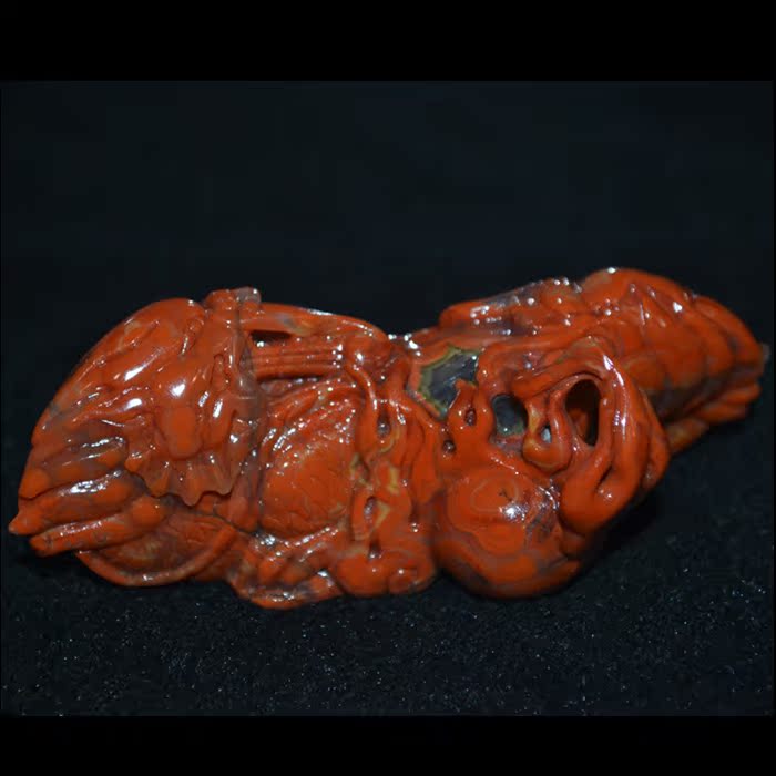 Boutique Warring States Red Carving Ornament Beipiao Material Raw Stone Carved Pen Frame Jewelry Dragon Pattern Men's and Women's Models