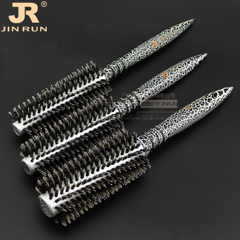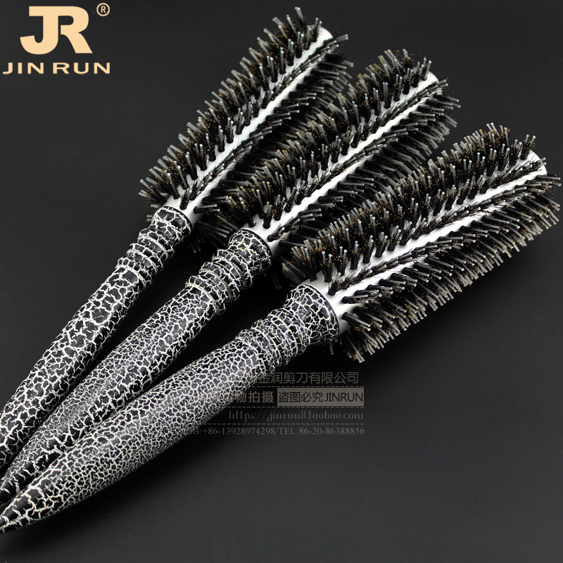 Hair Stylist Round Roll Comb Lengthened Roll Comb High Temperature Resistant Pig Mane Hair Inner Button Pear Flower Head Wave Head Styling Wood Comb