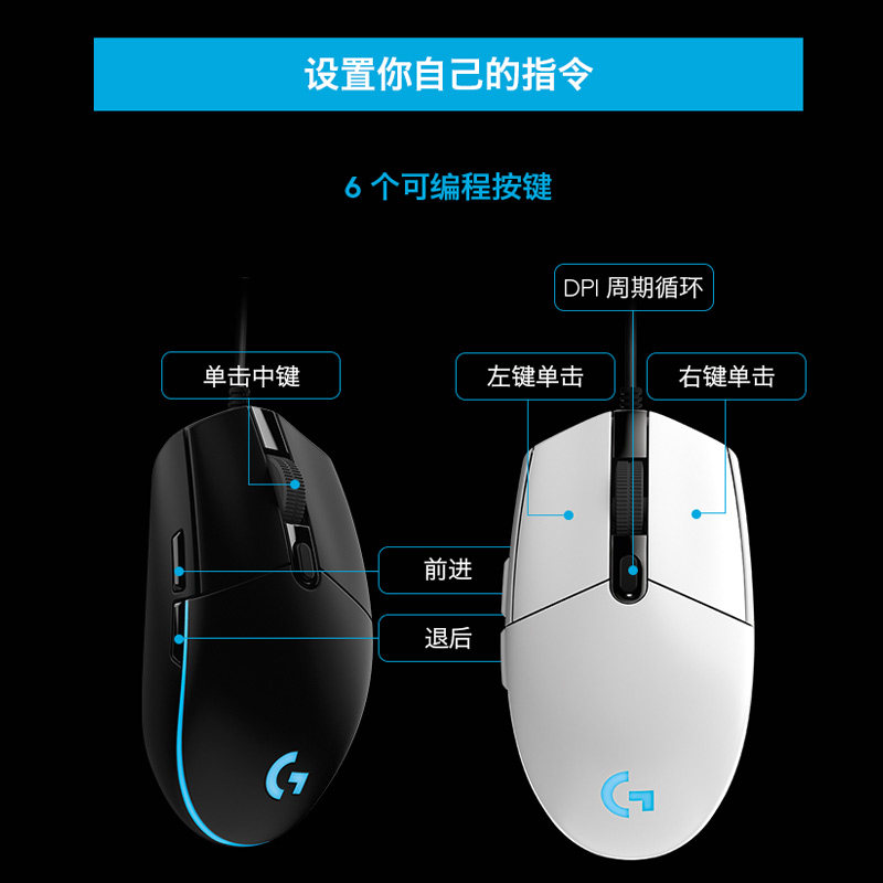 Logitech G102 second-generation programmable design macro six-button RGB colorful LOL PUBG Mobile game mouse