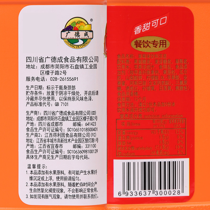 Guangcun Fruity Drink Concentrated Syrup Strawberry Juice Concentrated Fruit Tea Milk Tea Shop Exclusive Commercial Raw Material 1 9L