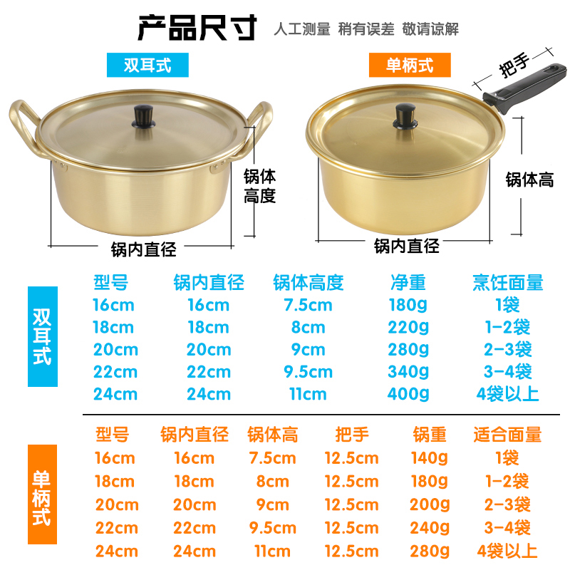 Korean instant noodle pot ramen pot small boiling pot induction cooker Korean net red binau instant noodle pot cooking noodle pot yellow aluminum pot