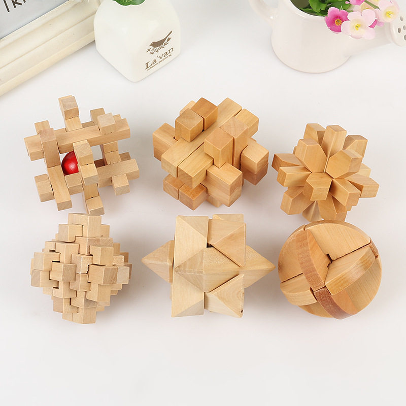 Wooden Kongming lock Luban ball adult decompression children's educational classical toys to unlock 6-piece gift box