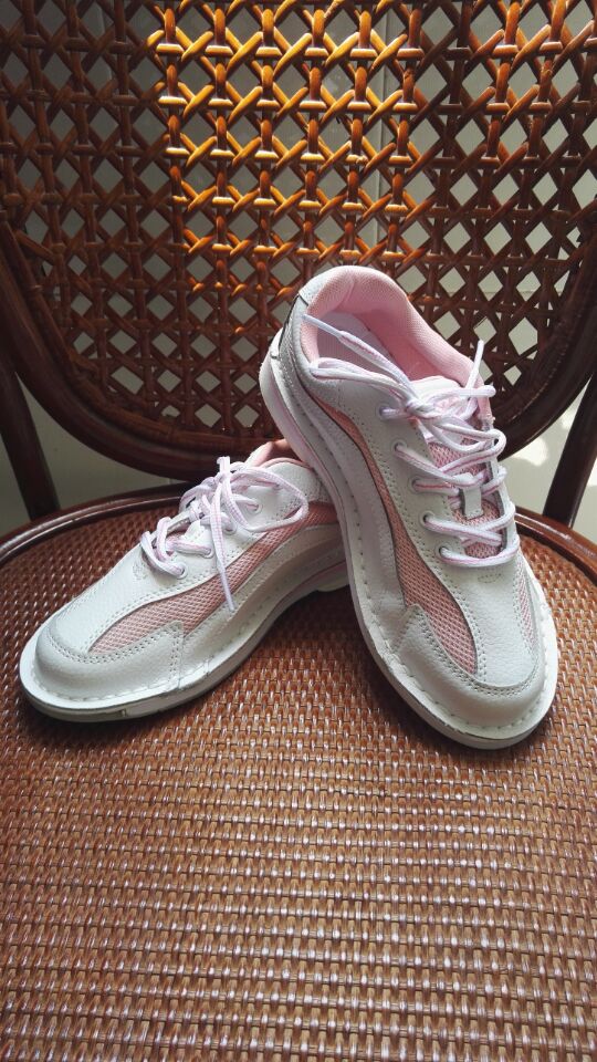 The shopkeeper recommends pink white leather side good breathable women's professional bowling shoes Pink White