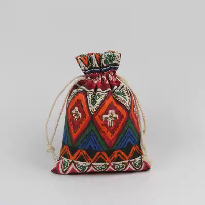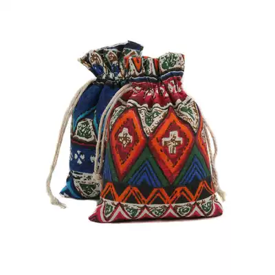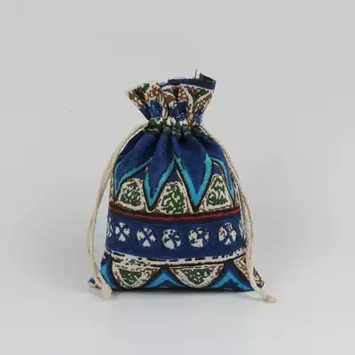 Ethnic style cotton linen bag bundle mouth bundle pocket small bag sundries storage bag Jewelry bag Jewelry bag empty bag