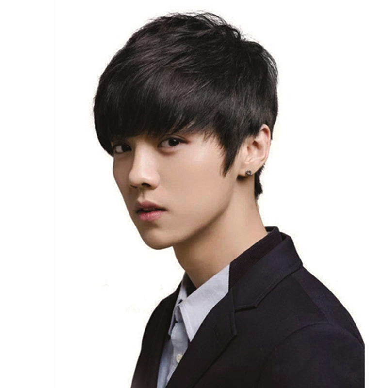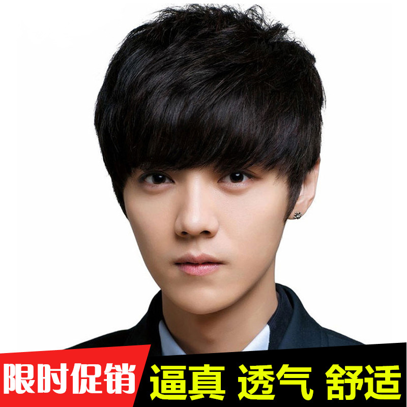 Men's wig real hair short hair Han version realistic and breathable handloom fluffy handsome boy wig sets live-action hair