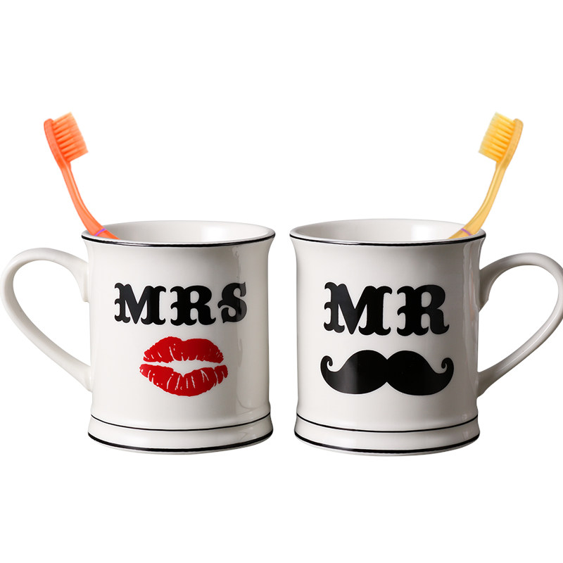 Creative couple mouthwash cup European toothbrush cup ceramic wash cup set toothbrush cup tooth cylinder simple with handle