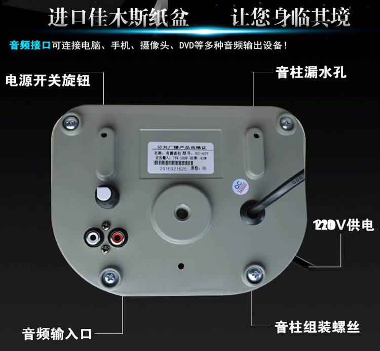 20W 40W active sound column comes with amplifier outdoor waterproof audio monitoring speaker park shop speaker
