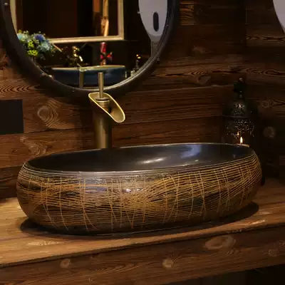 Jia Tempo Chinese retro art stage basin Oval dressing room ceramic washbasin home antique