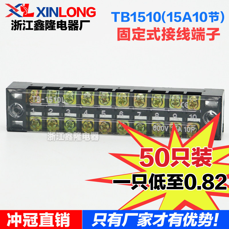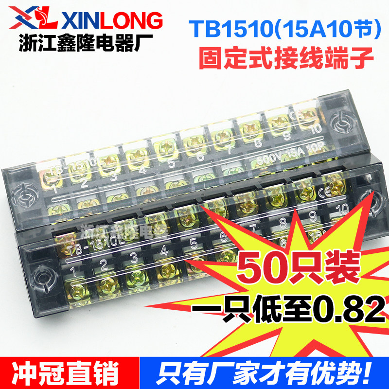 Factory direct terminal block TB1510 15A fixed terminal block 10 bit terminal 50 non-sliding wire