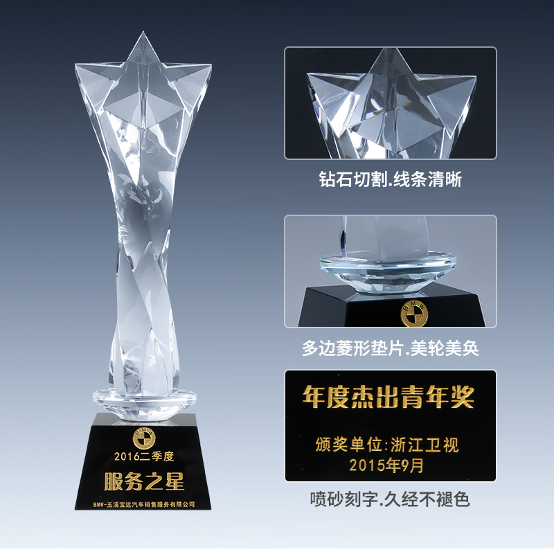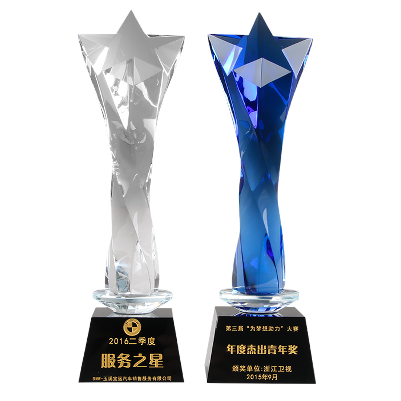 Creative Pentagram Crystal Trophy Custom Set Up Excellence Employees Awards Business Annual Conference Prize Making Lettering