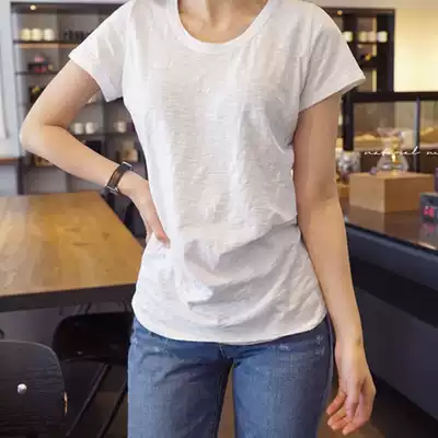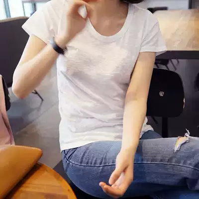 ins2021 summer clothes new Korean top slub cotton slim slim all-match pure cotton short-sleeved t-shirt women loose