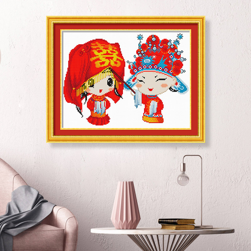 Cross stitch 2021 new couple thread embroidery small bedroom living room tie the good edge embroidered hand wedding room