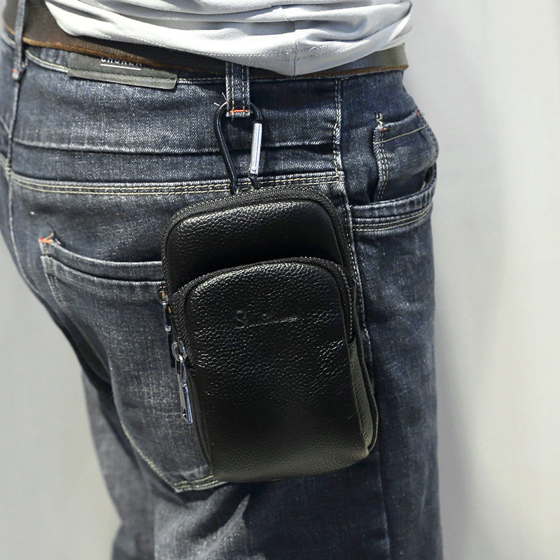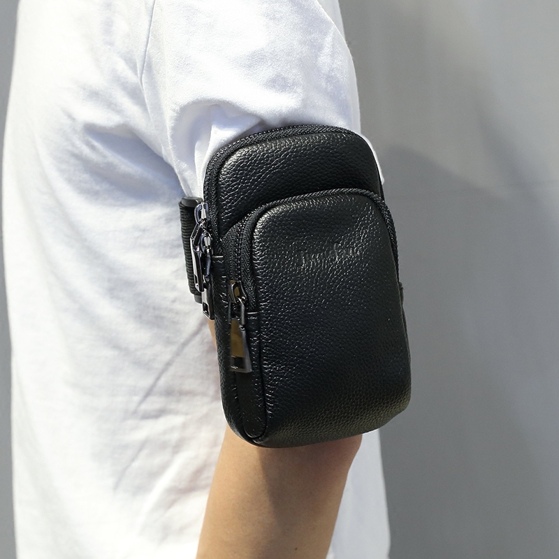 Men Wear Leather Belts Mobile Phone Pocket Running Casual Bull Leather Arm Bag Mini Genuine Leather Men's Bag Phone Bag Cell Phone Bag