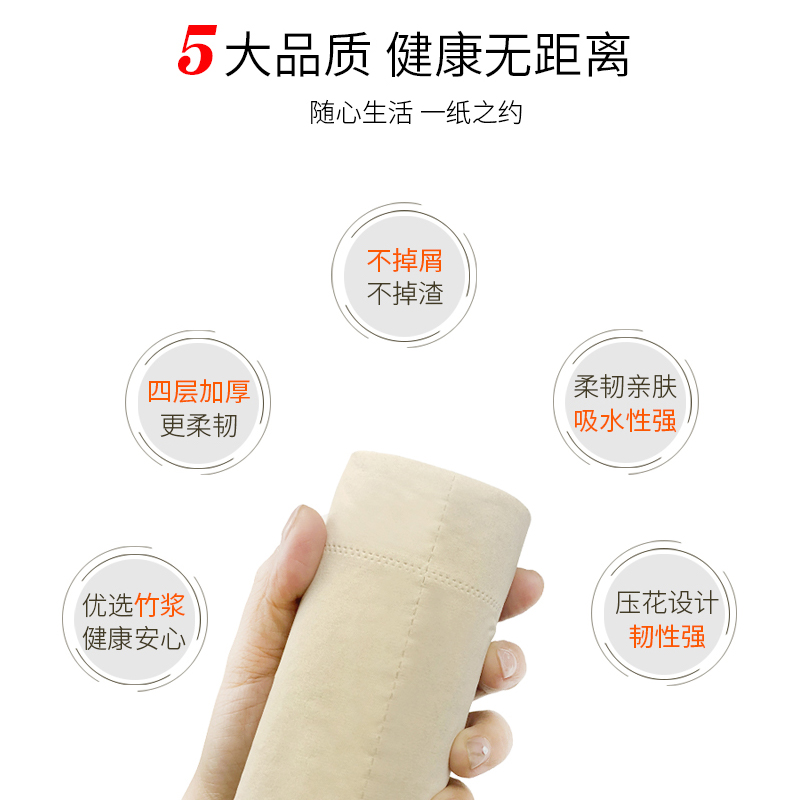 Dayi 64 rolls 4 layers of bamboo pulp natural color roll paper roll paper household soluble toilet paper towels coreless hand paper family pack