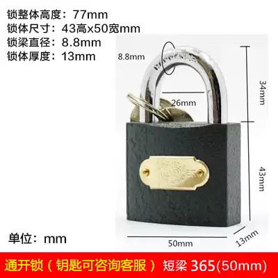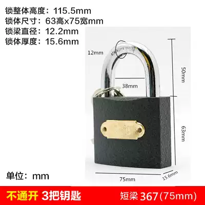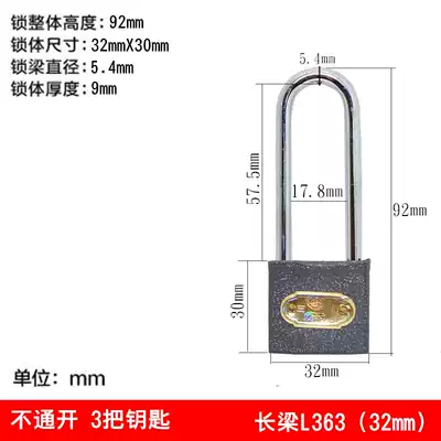 Three-ring lock pure copper core lock iron padlock straight open lock house door lock integral cabinet warehouse lock padlock anti-theft lock long beam lock
