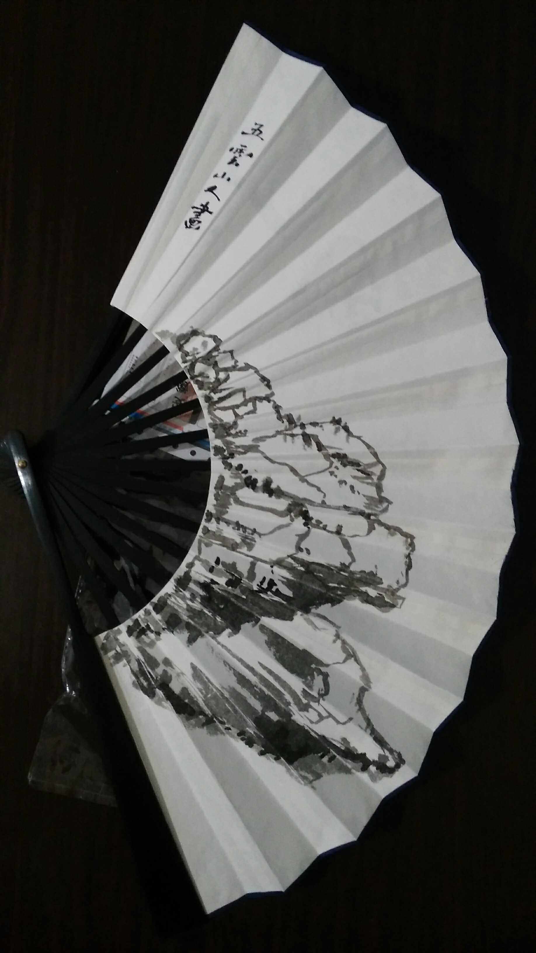 Poetry via Kuanwan Folding Fan Country Painting Mountain Stone Folding Fan Wuyunshan People's Calligraphy Calligraphy ten-inch Sprinkle Golden Catholics