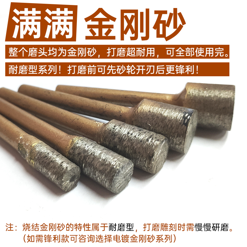 Sintering diamond grinding head straight grinding stick jade sculpted stone carved stone marble polished engraving polished grinding head