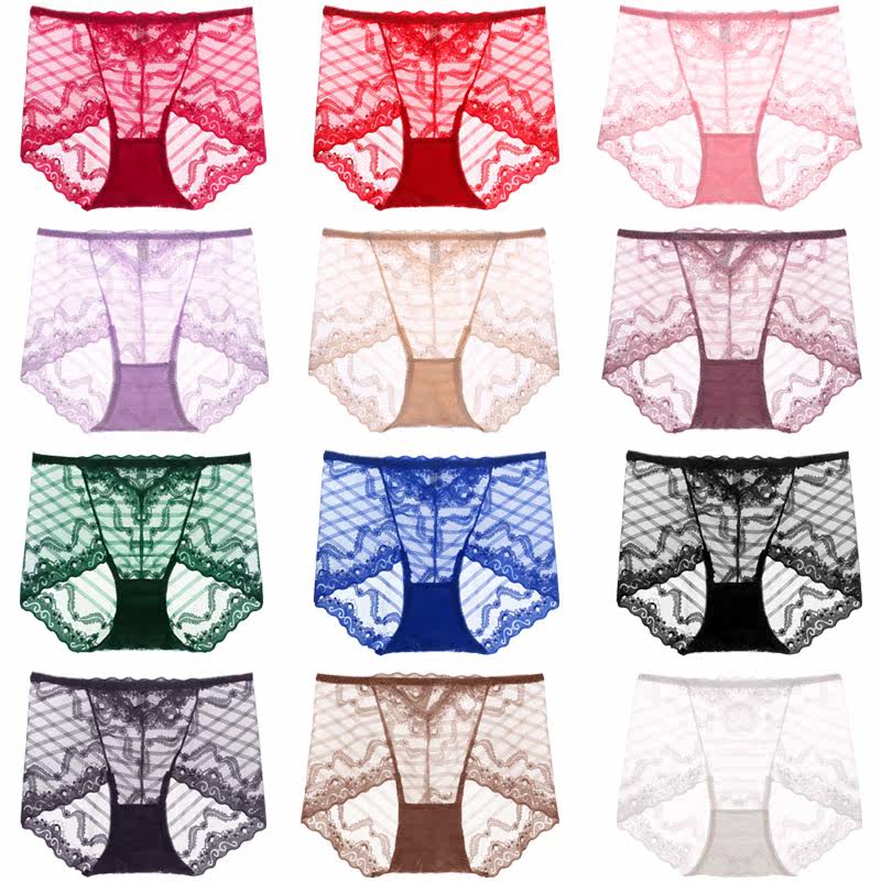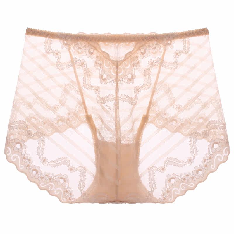 Large size sexy lace panties mesh high waist plus fat increase ladies transparent fat mm panties summer thin section