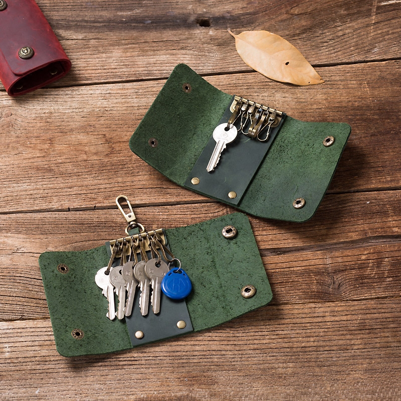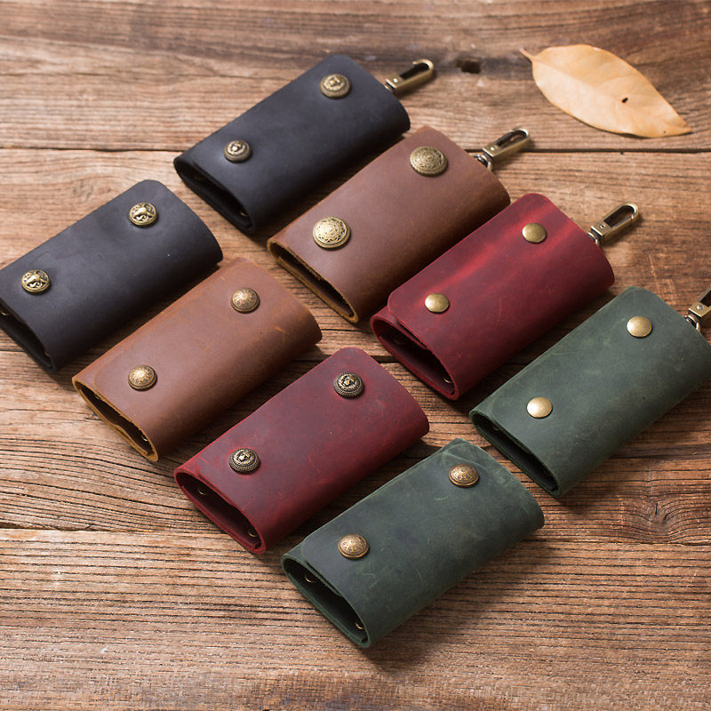 Snowborn Handmade Cow Leather Key Bag Men's Large Capacity Men's Key Bag Lady Genuine Leather by buckle Key pack European and American tides