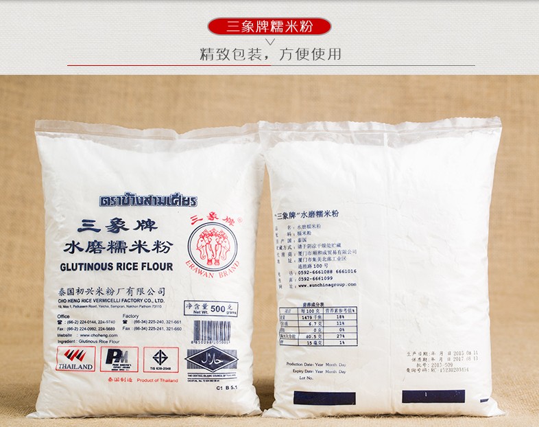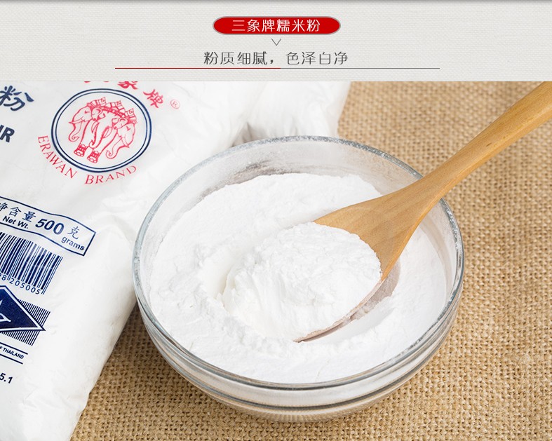 Thailand imported three elephant brand water milled glutinous rice flour 500g*5 bags of Tangyuan glutinous rice flour ice skin mooncake raw materials