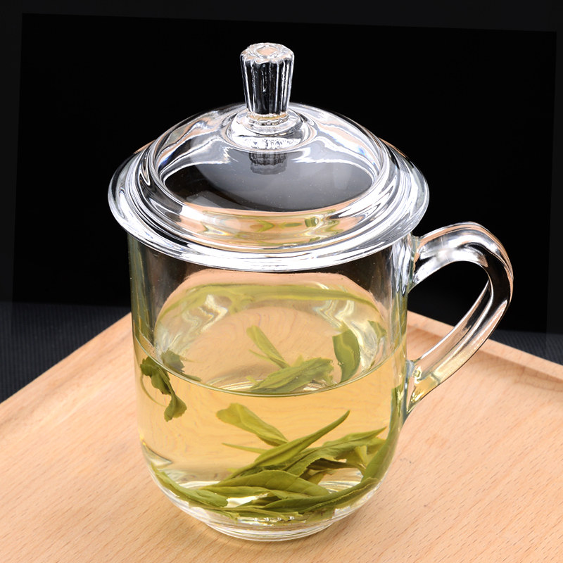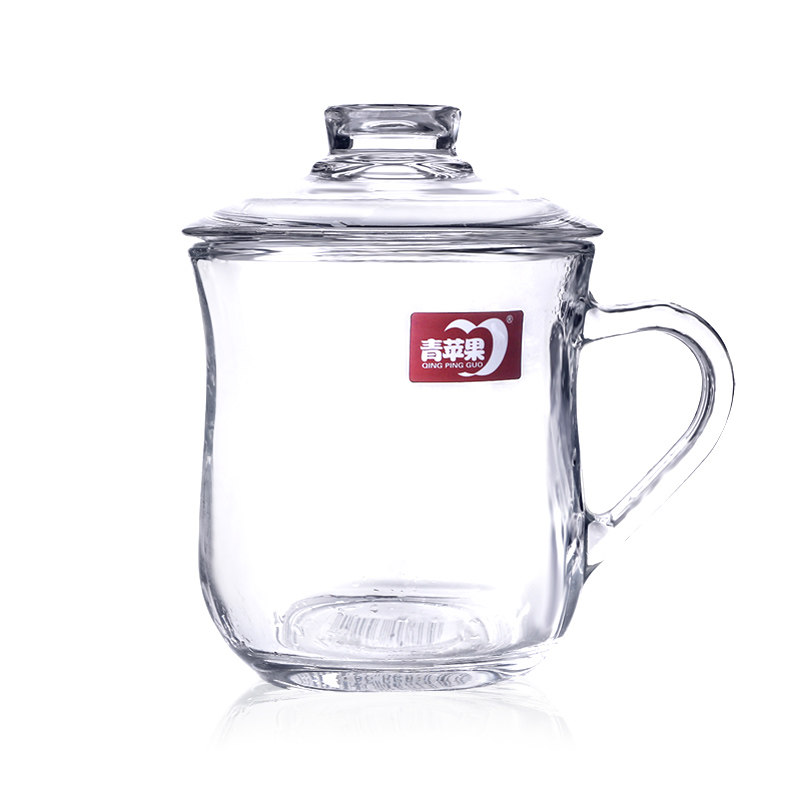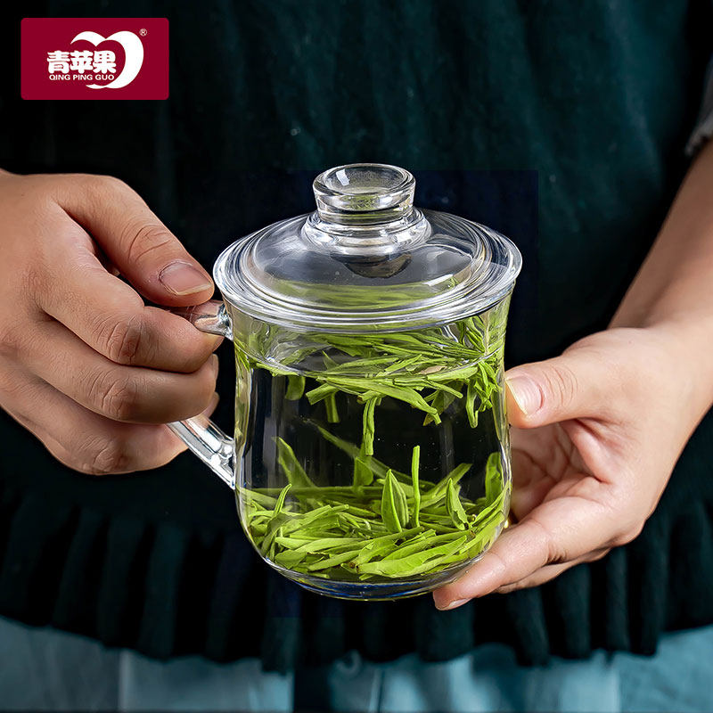 Green apple glass cup with lid drinking cup household with lid transparent tape milk coffee cup female cup