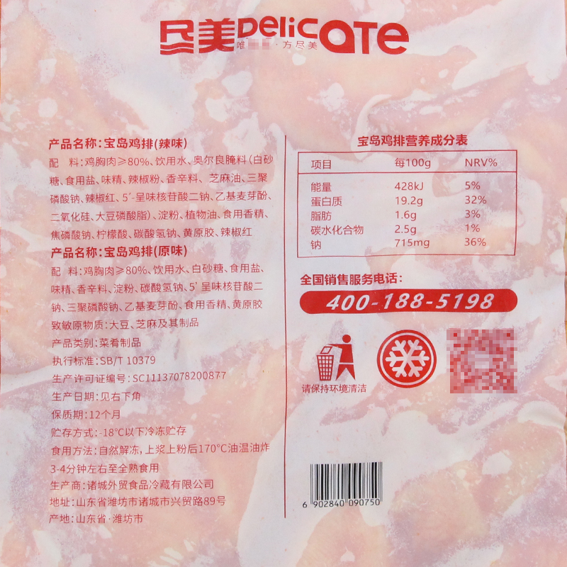 Zhucheng Foreign Trade Meibao island chicken steak 50*200g spicy chicken steak conditioning marinated semi-finished frozen chicken steak