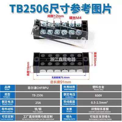 Factory direct cable terminal TB2506 25A fixed terminal block 6-position terminal 50 non-sliding wire