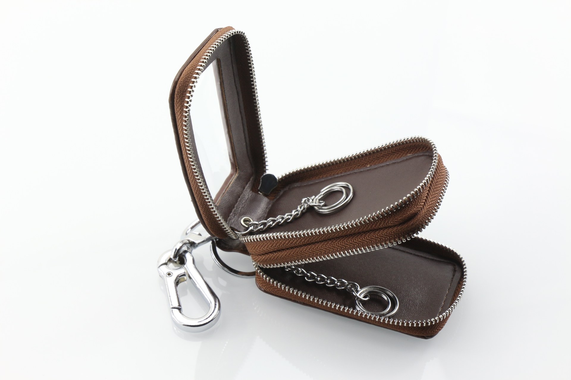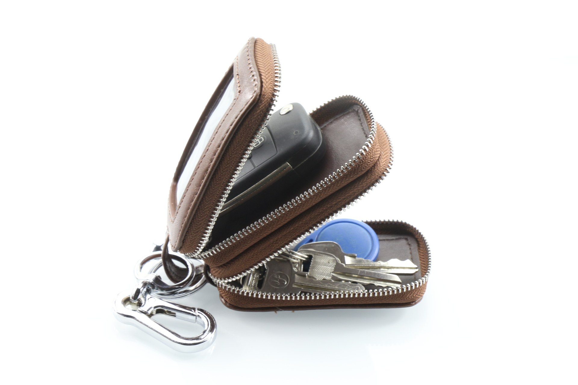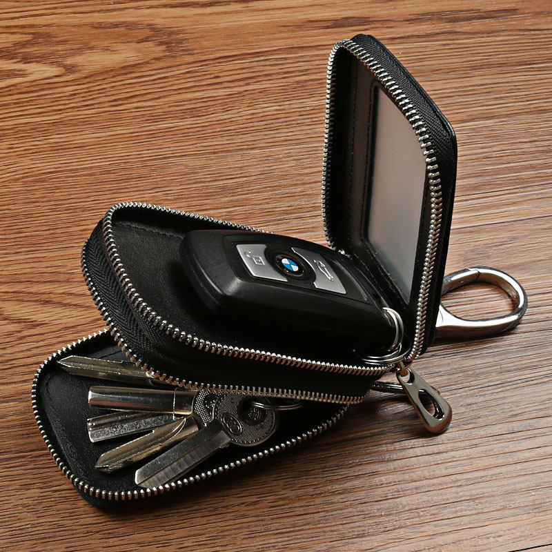Men's Multifunctional Large Capacity Double Zipper Car Key Case Women Woven Leather Double Leather Key Case Practical