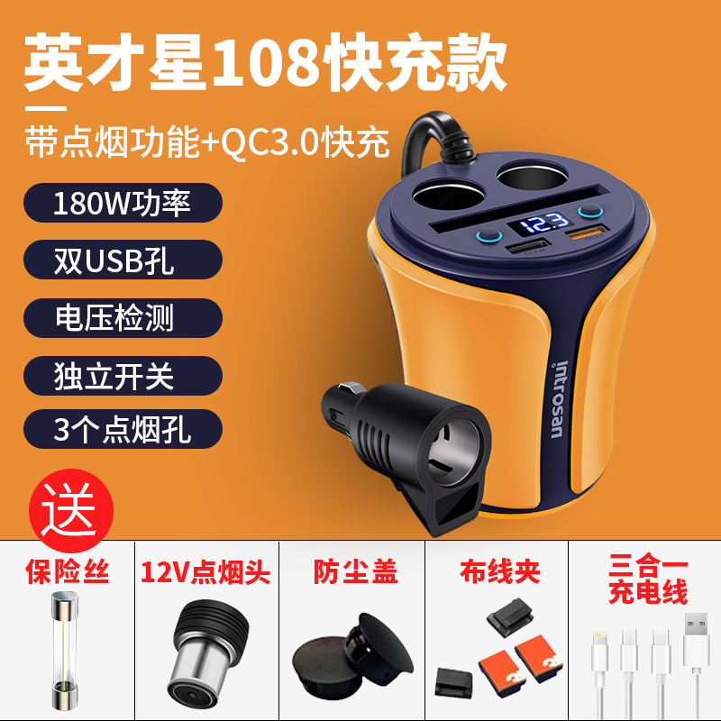 Car charger one for three multi-functional cigarette lighter conversion plug one for two usb car charger fast charge