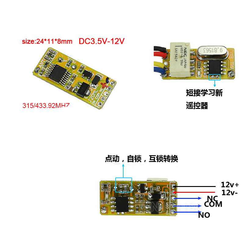 Mini remote control power switch LED light wireless control module 3 7v Lithium battery switch micro remote control