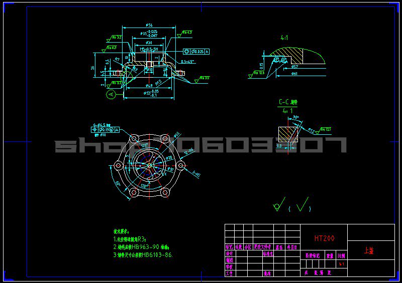 Upper cover process discipline and drilling 6-4 5 holes clamp design CAD drawings and notes
