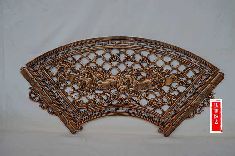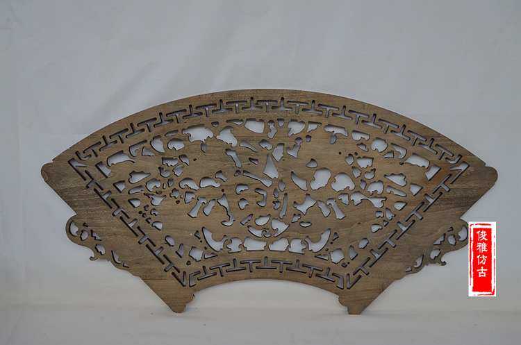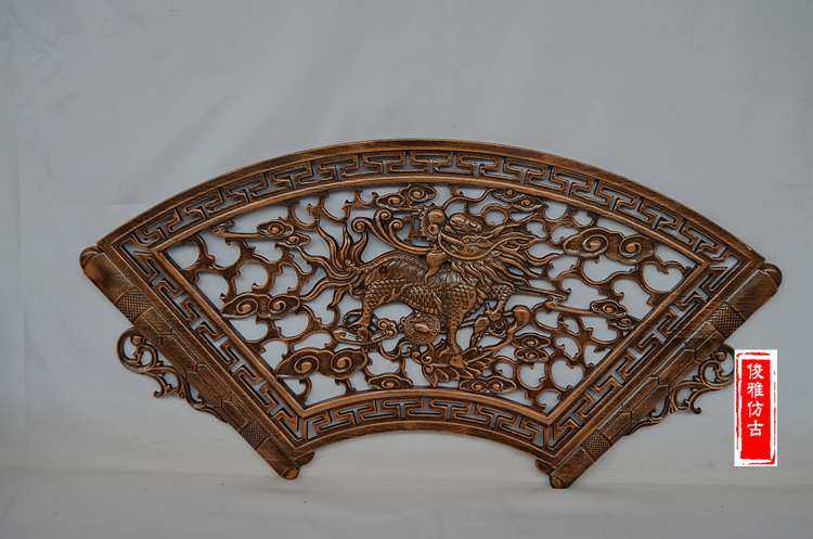 East Yang Wood Carving Pendant Engraved sector wall-mounted living room Xuanguan antique solid wood ancient wind Chinese style Phoenix Kirin hanging screen-Taobao