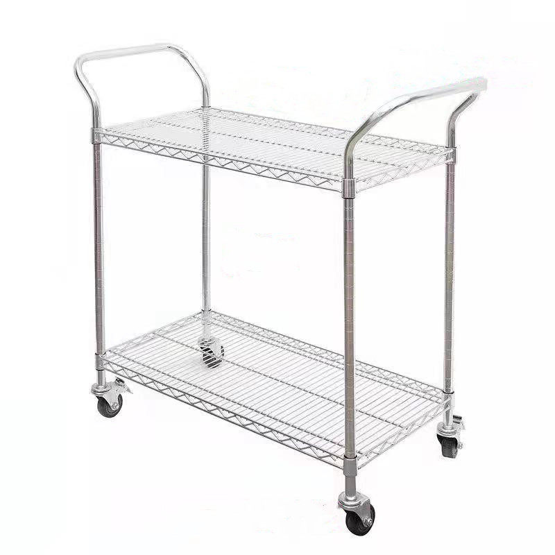 Chrome-plated simple sorting trolley wheeled anti-static mobile shelf factory workshop with two-layer material turnover car