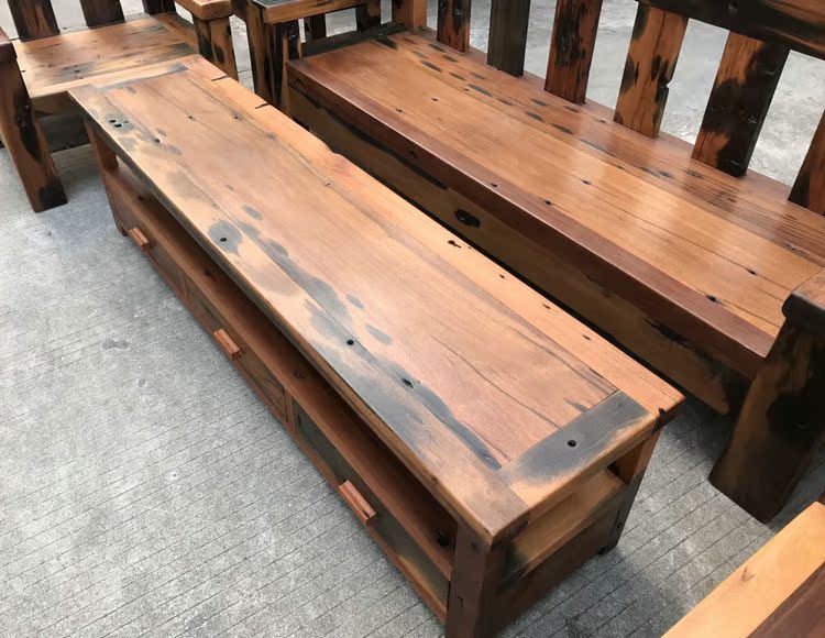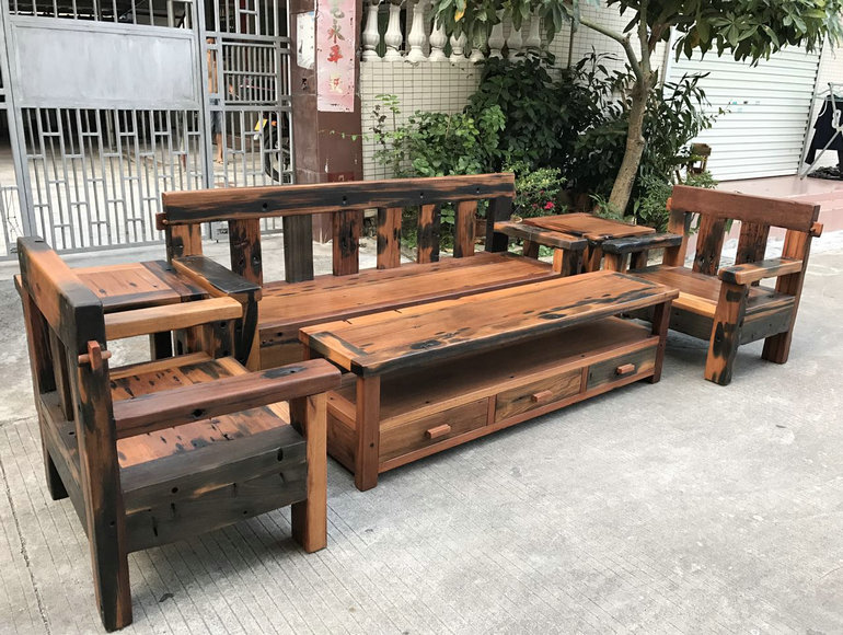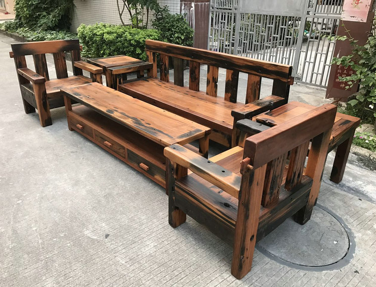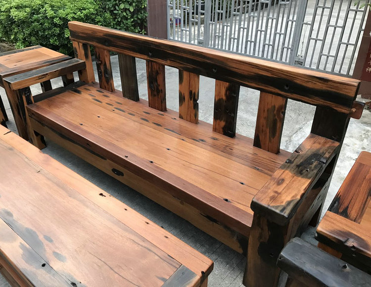 Old boat wood solid wood sofa tea table combination lobby high-grade club villa living room office tea room leisure sofa