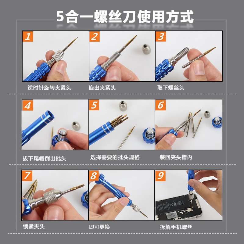 CXG Record high mobile phone repair Disassembly Tool Package Five-star phillips Screwdriver 5-in-1 screw pen Set