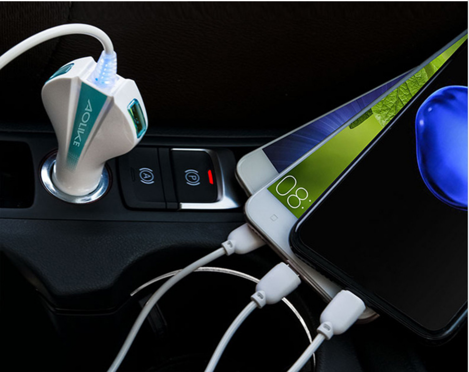 Car mobile phone charger QC3 0 dual USB fast charge portable one drag three belt lines