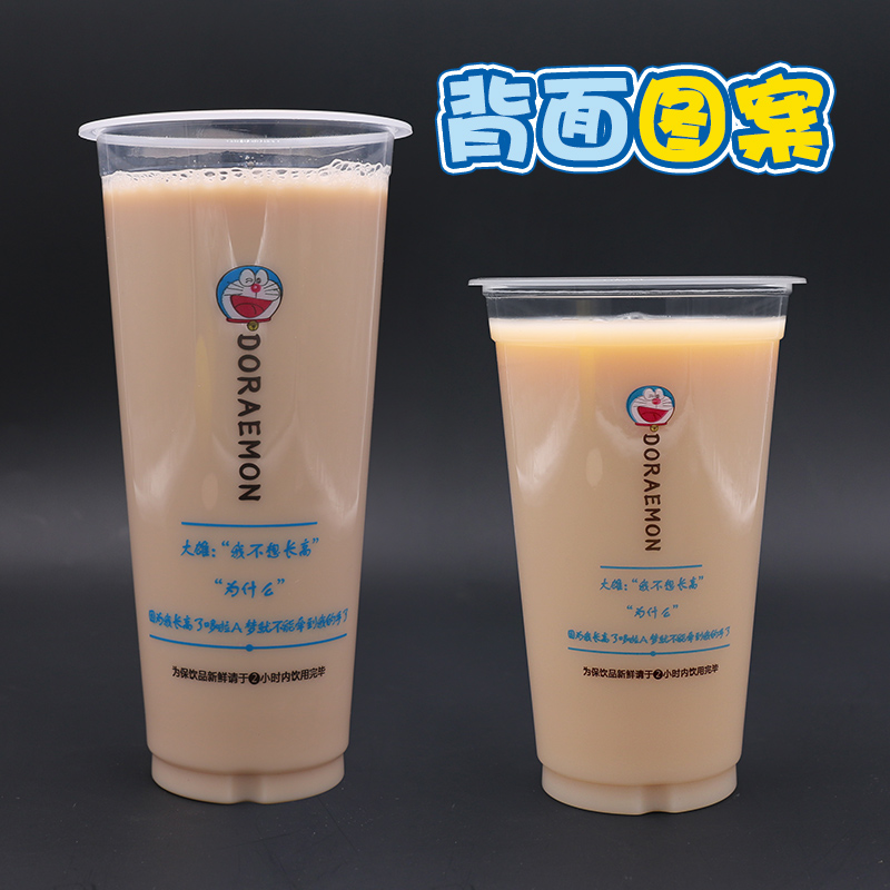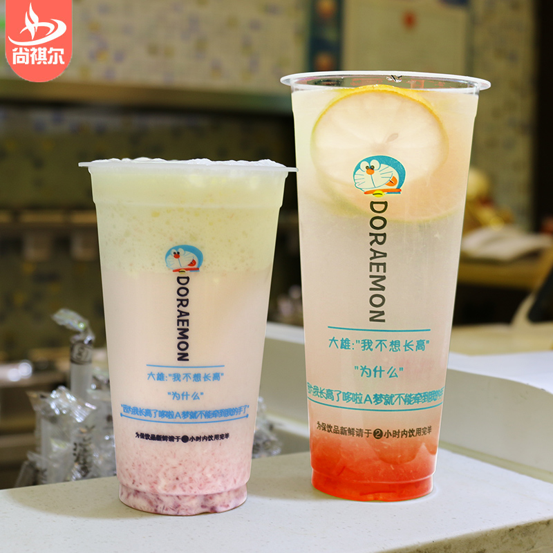 90 caliber Doraemon disposable plastic milk tea cup thickened juice drink packing cup 500 700ml