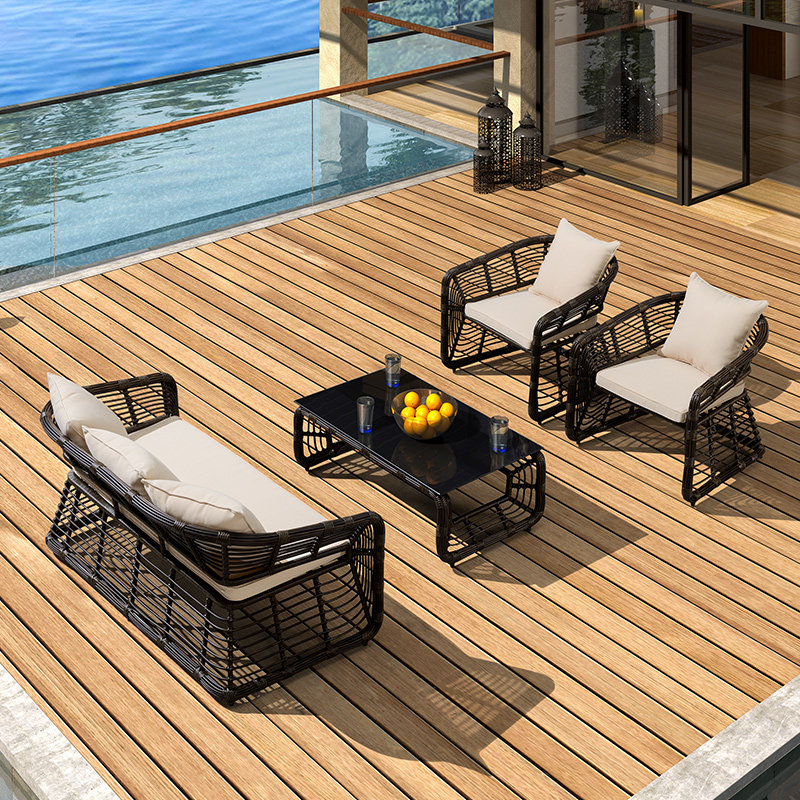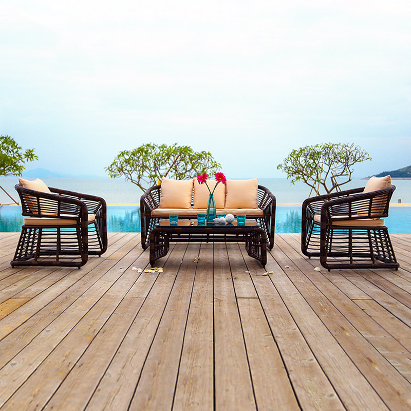 Purple Leaf Outdoor Sofa Rattan Furniture Garden Rattan Chair Combination Nordic Garden Waterproof Leisure Chair Balcony Sofa Chair