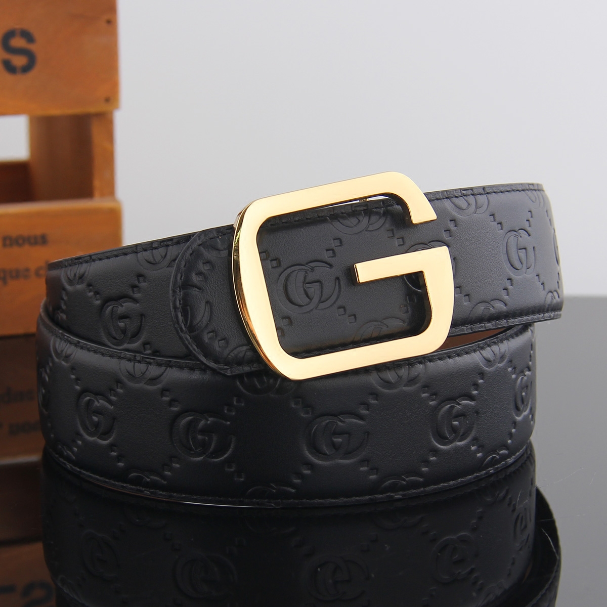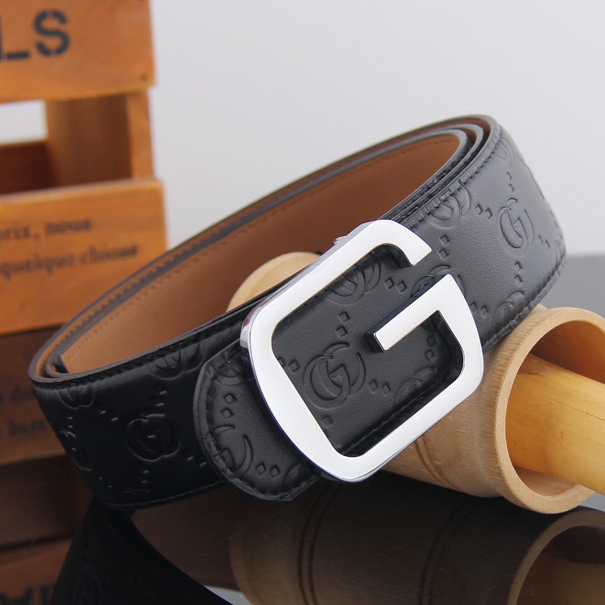 Ai Lanbao personalized embossed first layer cowhide men's leather belt leather Frosted cowhide belt youth Korean casual